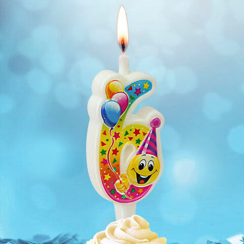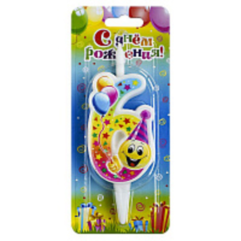 Свеча тортовая, "Смайлик с шарами", цифра "6".