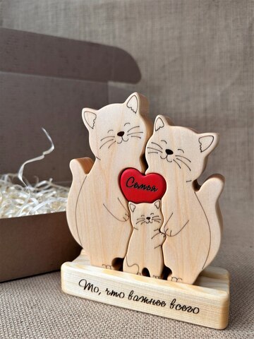Статуэтка-пазл "Котики Трое" из массива липы