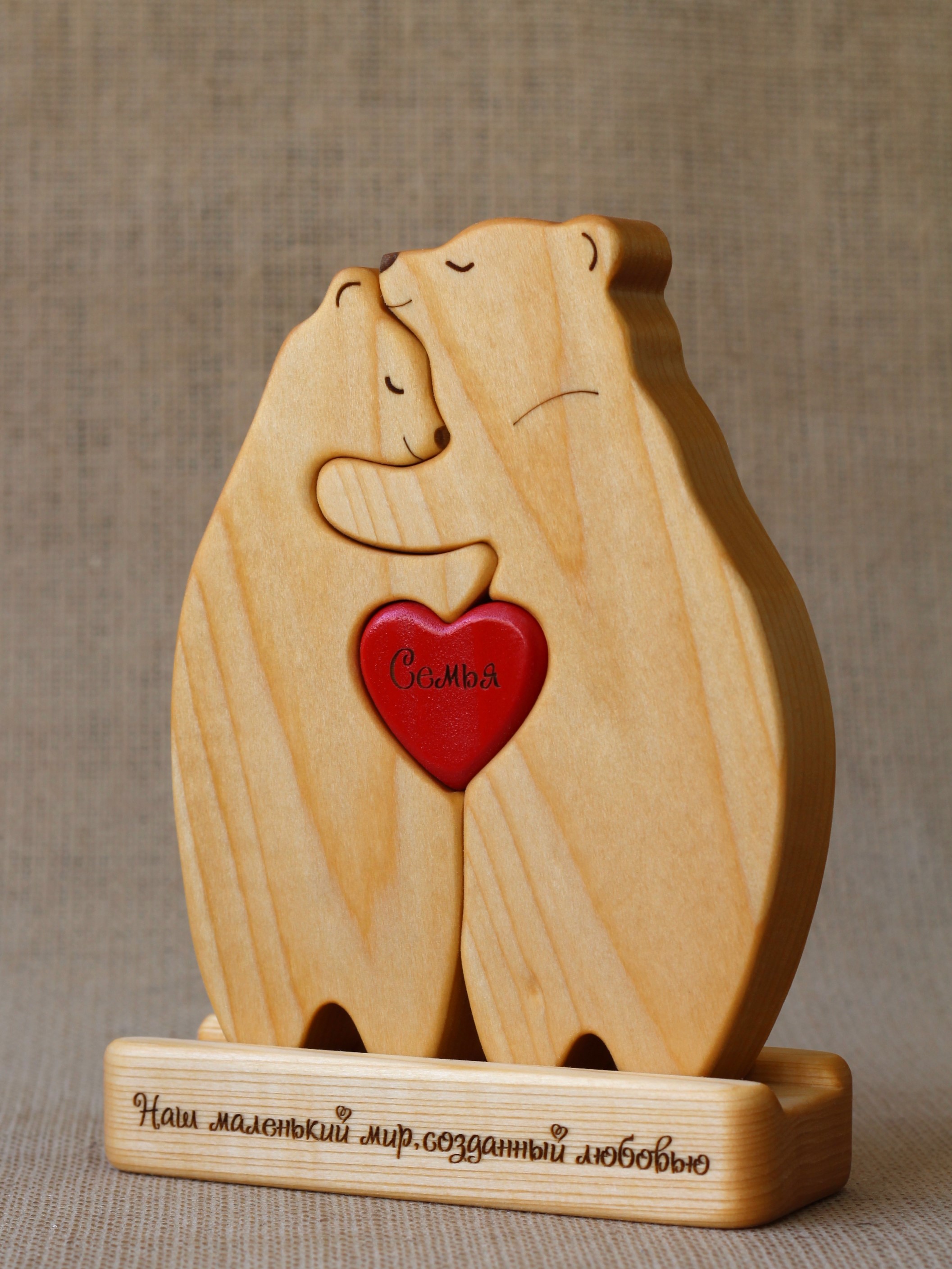 Статуэтка-пазл "Мишки в обнимку Двое" из массива липы