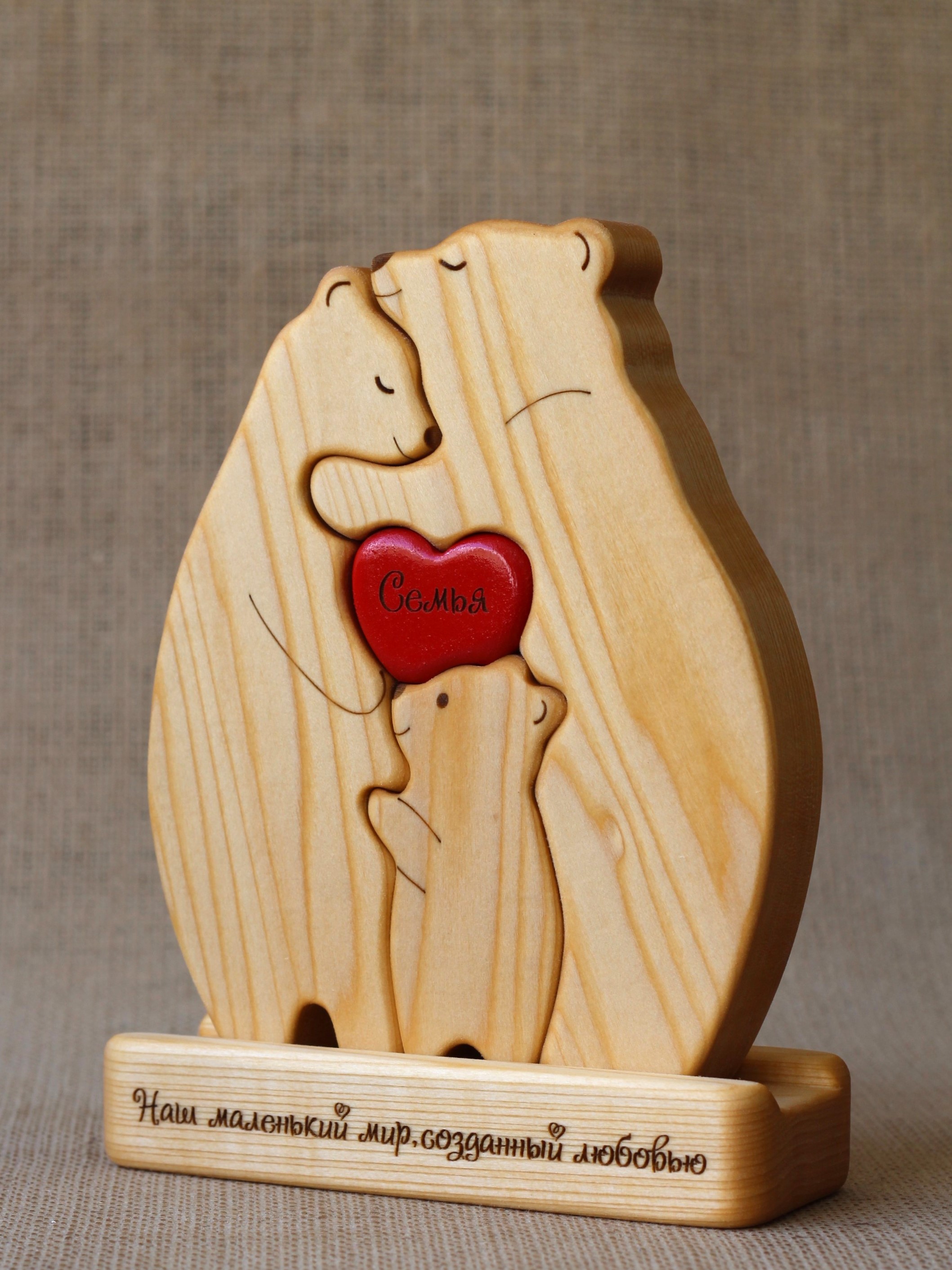 Статуэтка-пазл "Мишки в обнимку Трое" из массива липы