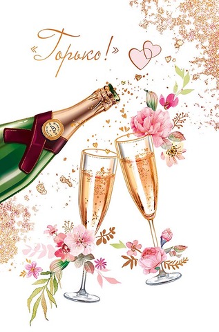 Открытка Горько! (свадебные бокалы), Металлик, 12*18 см, 1 шт
