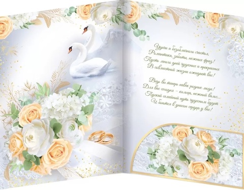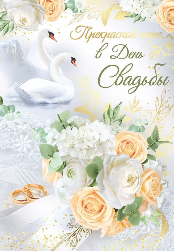 Открытка, Прекрасной паре в День свадьбы, Лебеди, 27,7*19,6 см, 1 шт.