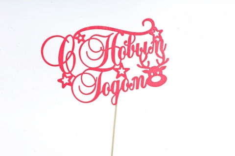 Топпер, "С Новым годом," Олень, Красный, 15*9 см.
