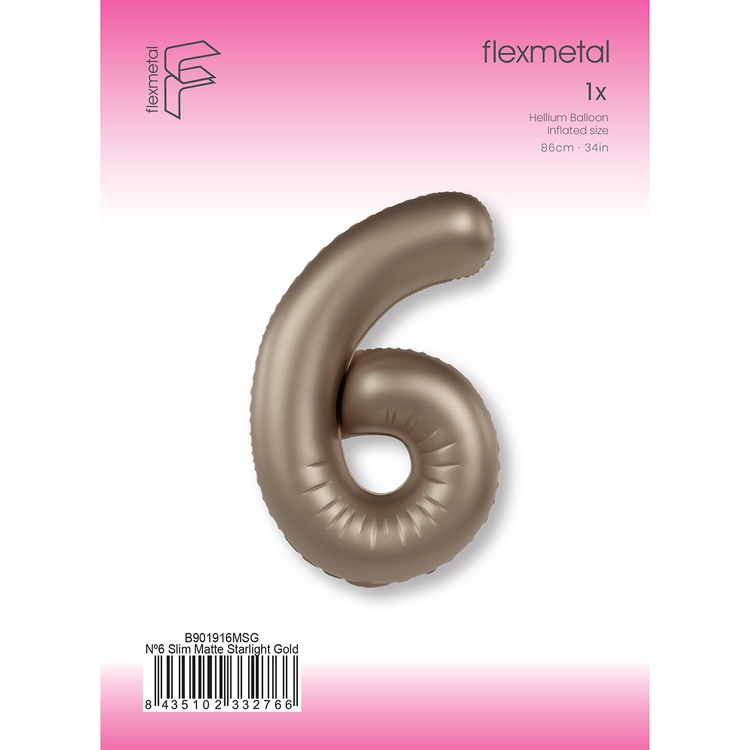 F 40"/102 см, Цифра Slim, Сатин, Звездное золото (Белое золото) "6" (в упаковке)