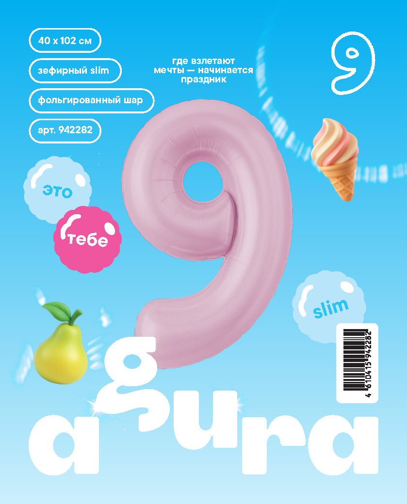Аг 40''/102 см, Цифра Slim Зефирный "9" (в упаковке)