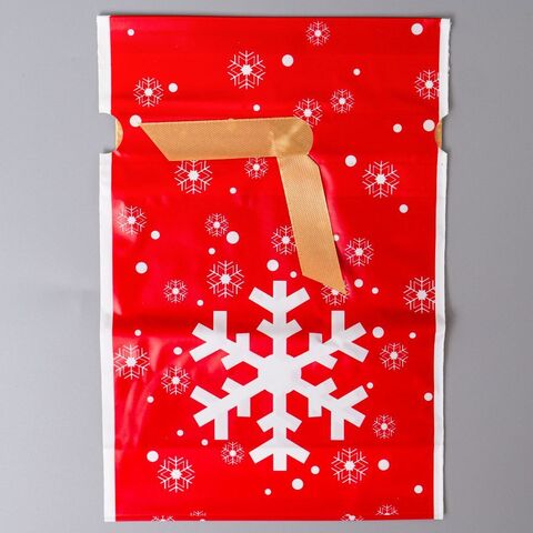 Пакет полиэтиленовый, Снежинки на красном, 15*23 см (Д*В), 10 шт.