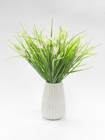 Растение искусственное, Зелень с цветами на вставке, Белый, 34 см, 1 шт.
