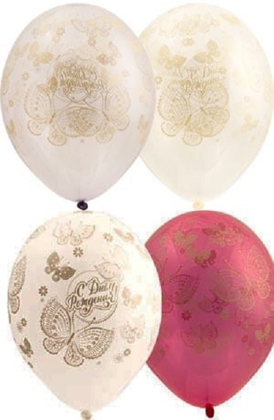 ВВ 14"/36 см, С Днем Рождения, Шелкография ассорти, Бабочки, 25 шт
