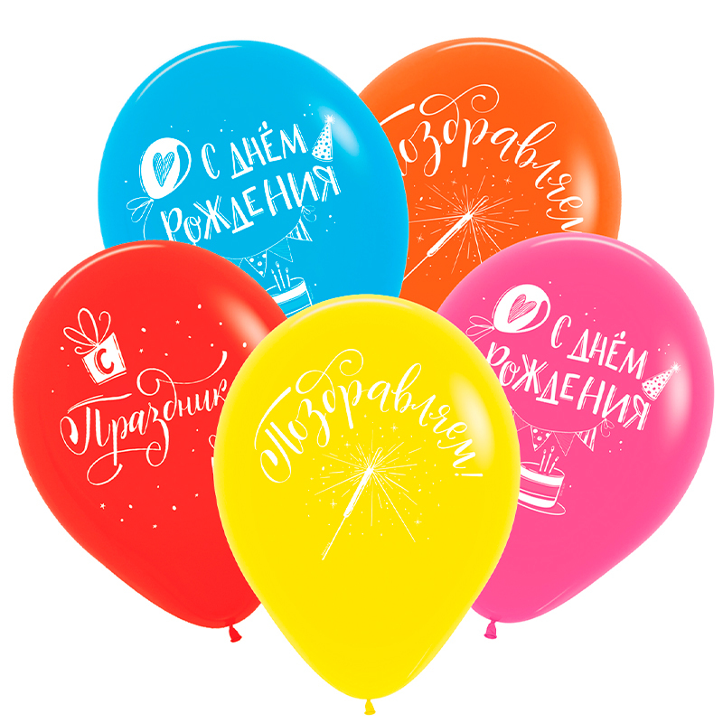 Д 12"/30 см, С Днем Рождения, Поздравления классические, Ассорти Пастель, 25 шт.
