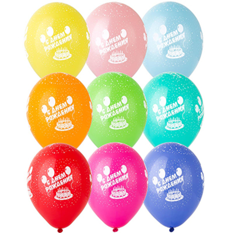 ВВ 14"/36 см, С Днем Рождения, Шелкография пастель, Торт и шары, 25 шт
