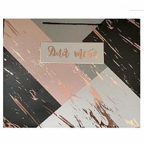 Пакет подарочный M вертикальный, "Для Тебя", Золотые брызги на мраморе, тиснение фольгой, 26*32*12 см (Д*В*Ш)