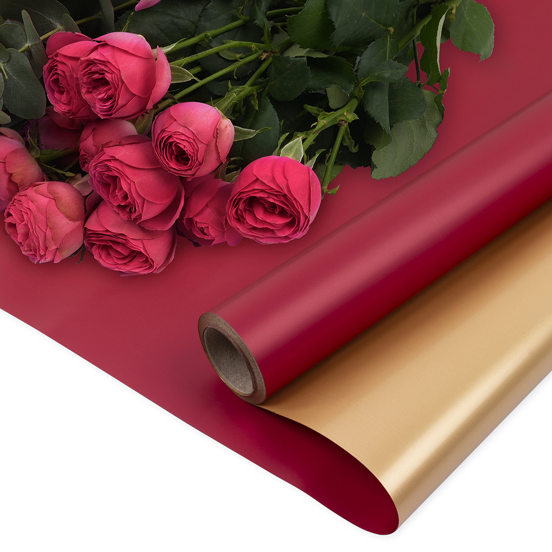 Упаковочная пленка/для цветов, Двухсторонняя матовая, Винный/Золото, 65 мкм, 0,57*10 м