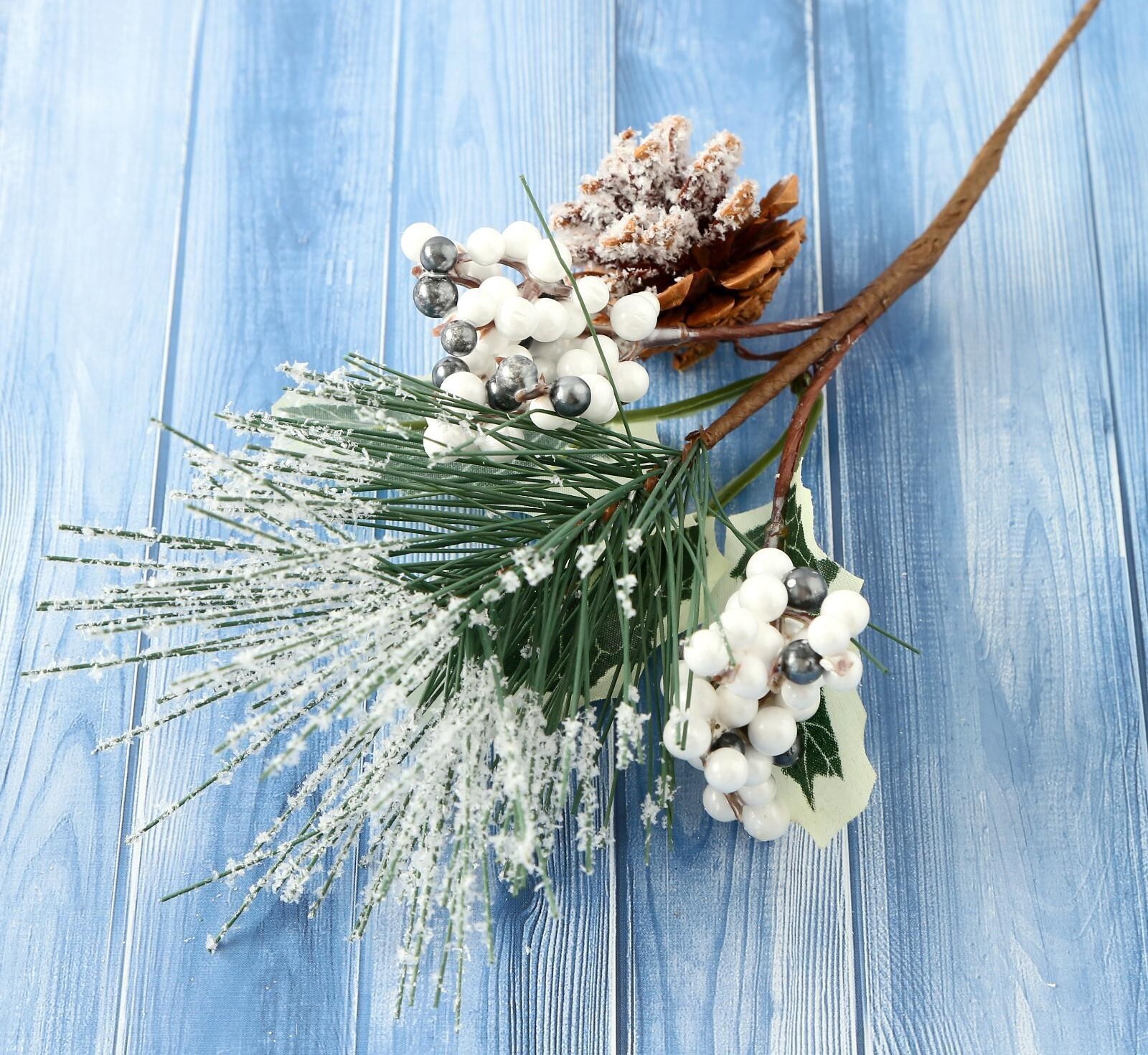 Ветка искусственная, "Зимнее очарование", Хвоя в снегу, Шишка, Ягоды, 21 см, 1 шт.
