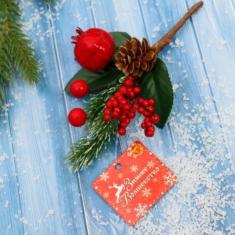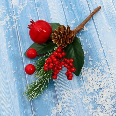 Ветка искусственная, "Зимние грезы", Яблоко, гранат, красная калина, 17 см, 1 шт.