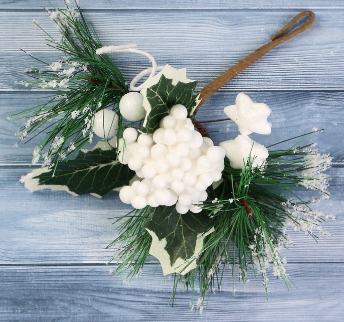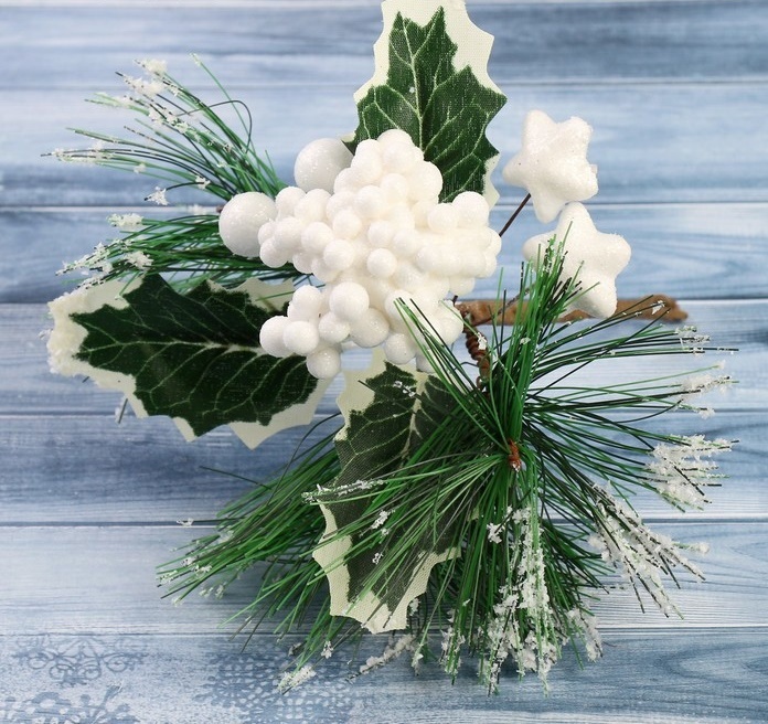 Ветка искусственная, "Зимние грезы", Звезды, Ягодки, Листики, 18 см, 1 шт.
