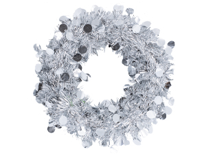 Венок мишура, подвесной, Серебро, 30 см
