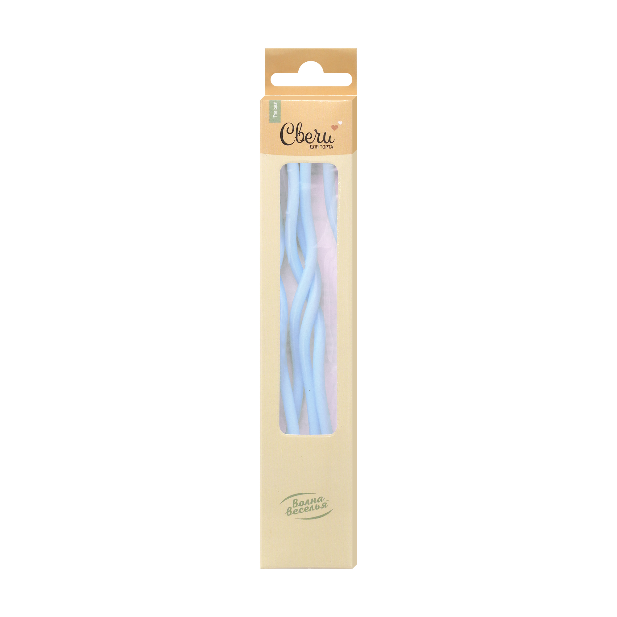 Свечи тортово-коктейльные Спираль Люкс, Синий, 0,4*13 + 3 см, 6 шт. с держат.