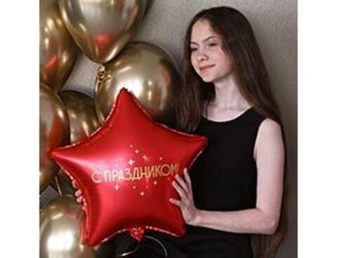 К 18''/46 см, Звезда, С Праздником, Красная, 1 шт. (В упаковке)