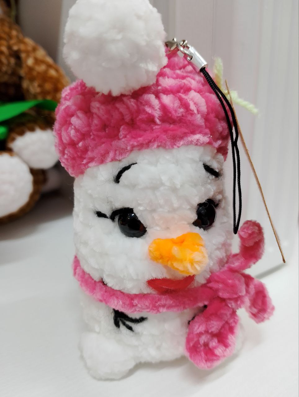 Брелок Снеговик в розовой шапке