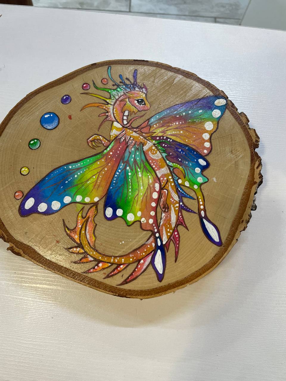 Спил береза с драконом