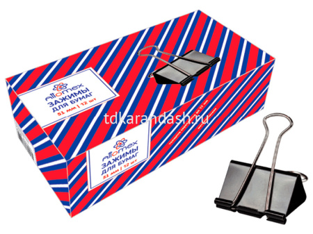 Зажим для бумаг 51мм 12шт. черный, в картонной коробке