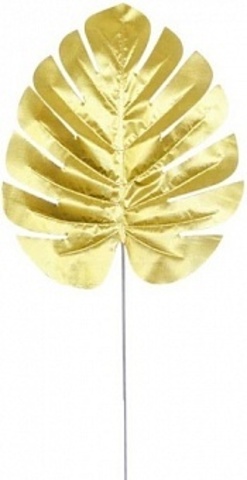 Растение искусственное, Лист Монстеры, Золото, Металлик, 14*30 см, 5 шт.