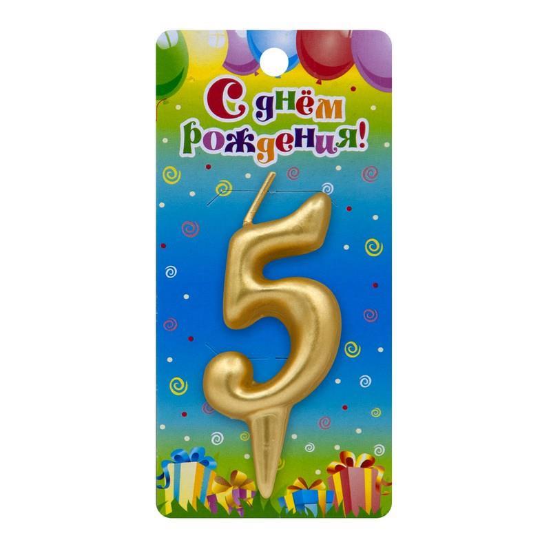 Свеча-цифра тортовая Золото "5", 7,5 см, 1 шт.