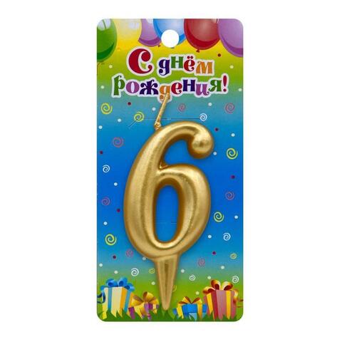 Свеча-цифра тортовая Золото "6", 7,5 см, 1 шт.